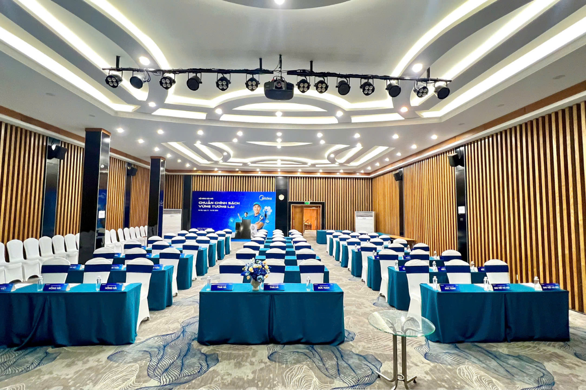 Hệ thống phòng họp rộng rãi, được trang bị hiện đại, có khả năng đáp ứng tổ chức đồng thời nhiều loại hình hội nghị, hội thảo, triển lãm, biểu diễn, tiệc… với lượng khách tham dự cùng một thời điểm lên tới 250 khách. Đảm bảo chuyên nghiệp với các yêu cầu cao nhất.