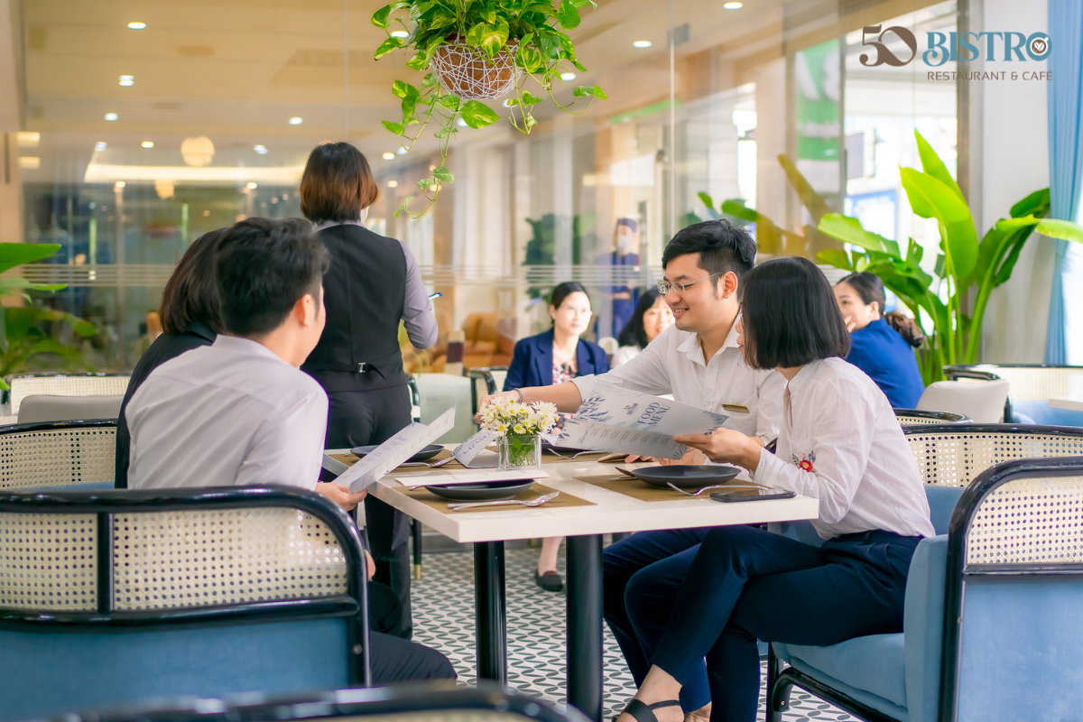 Không gian ẩm thực tuyệt vời với thiết kế tinh tế, trang nhã, hiện đại. Thực đơn phong phú phục vụ các món ẩm thực độc đáo mang hương vị đặc sắc Châu Âu và Châu Á.